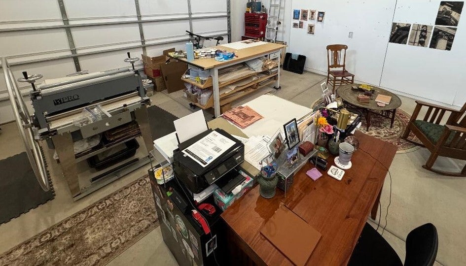 New work is coming soon. After several years raising our daughter and working in an office, I am finally back in my studio full time. Keep checking back for my progress and thank you for your interest! Meanwhile I hope you enjoy these images of my studio that I share with my photographer husband, Tom Patton.
