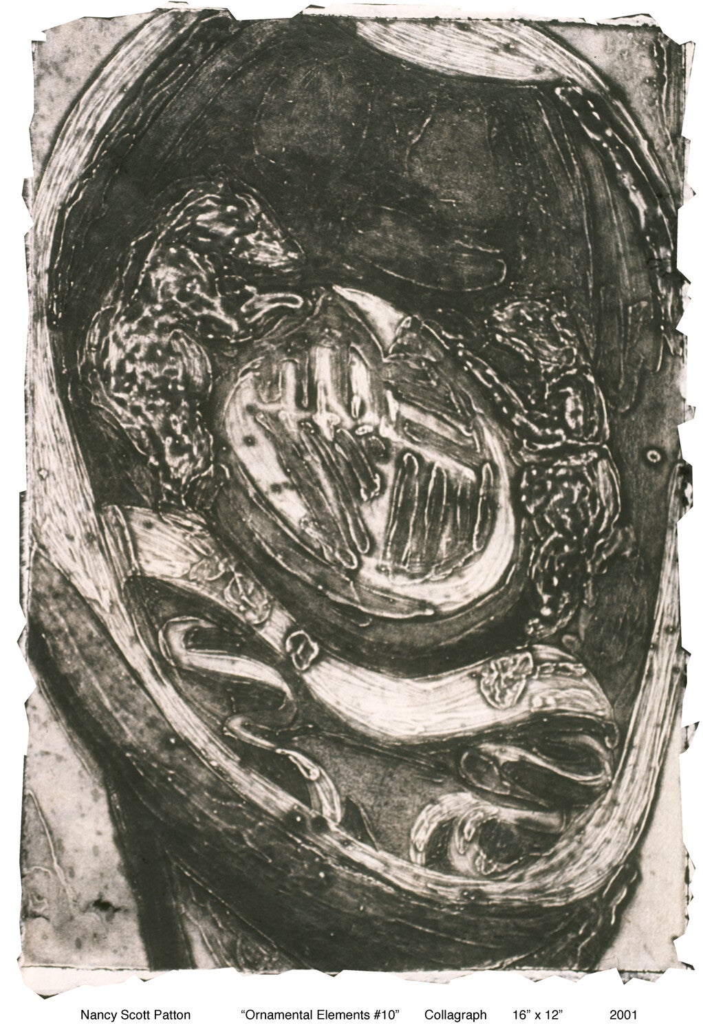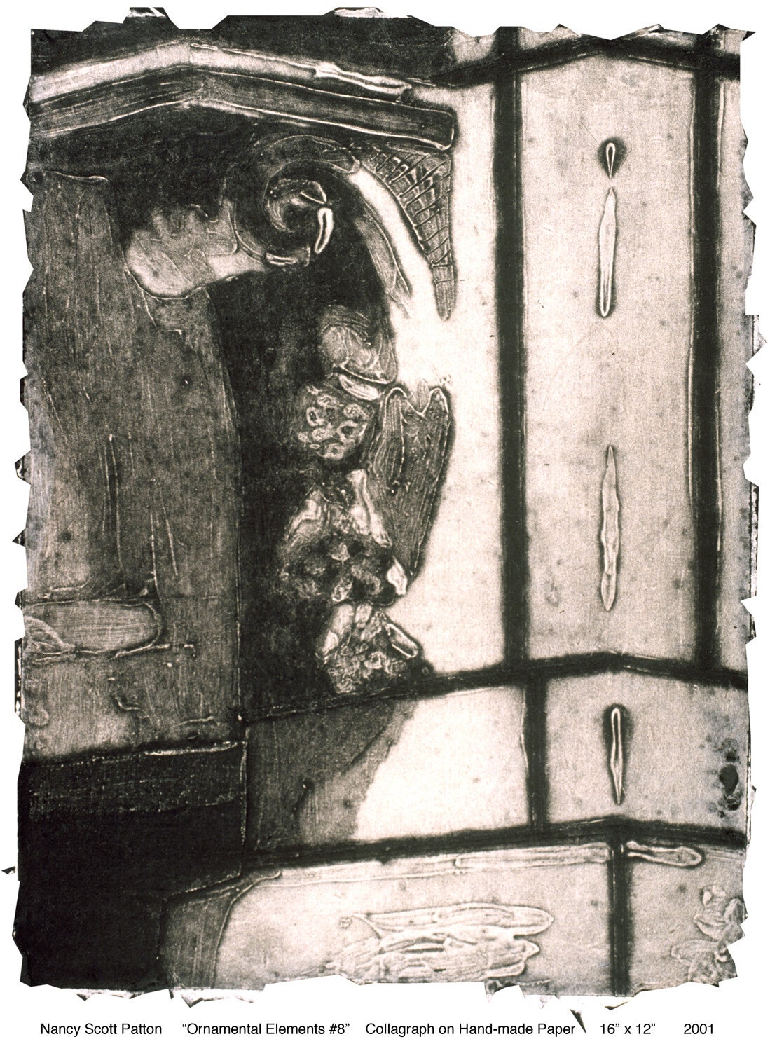 This non-editioned series, printed on handmade paper, explores how the media used to create the plate translates as painterly and drawn tonal rages.